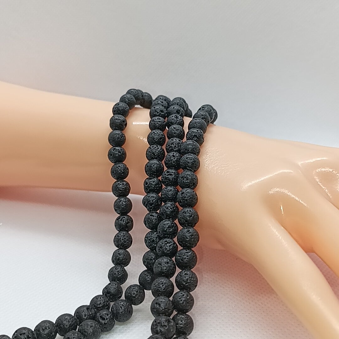 Le fil de perles en Pierre de Lave naturelle se distingue par sa couleur noire mate et légèrement poreuse, offrant un rendu authentique, brut et élégant. Un fil uniforme et harmonieux, idéal pour des créations artisanales robustes et originales.