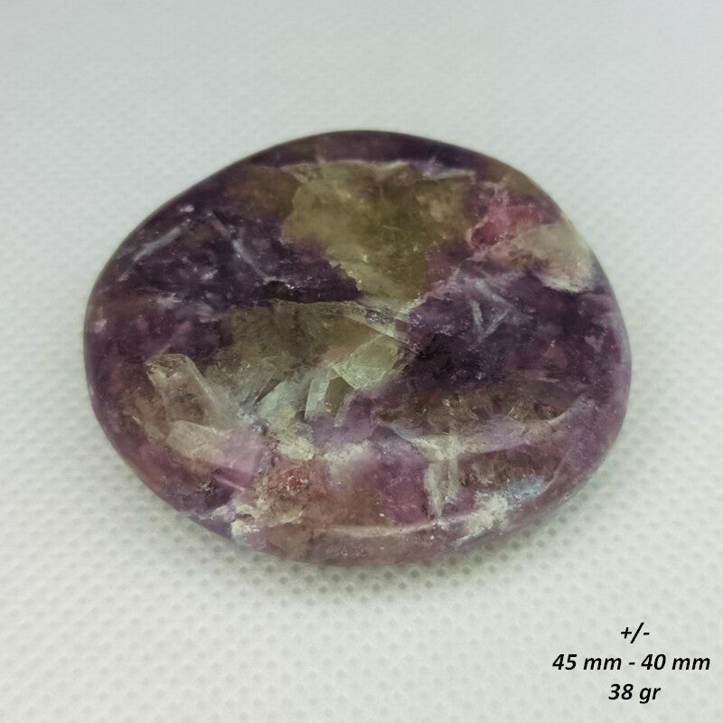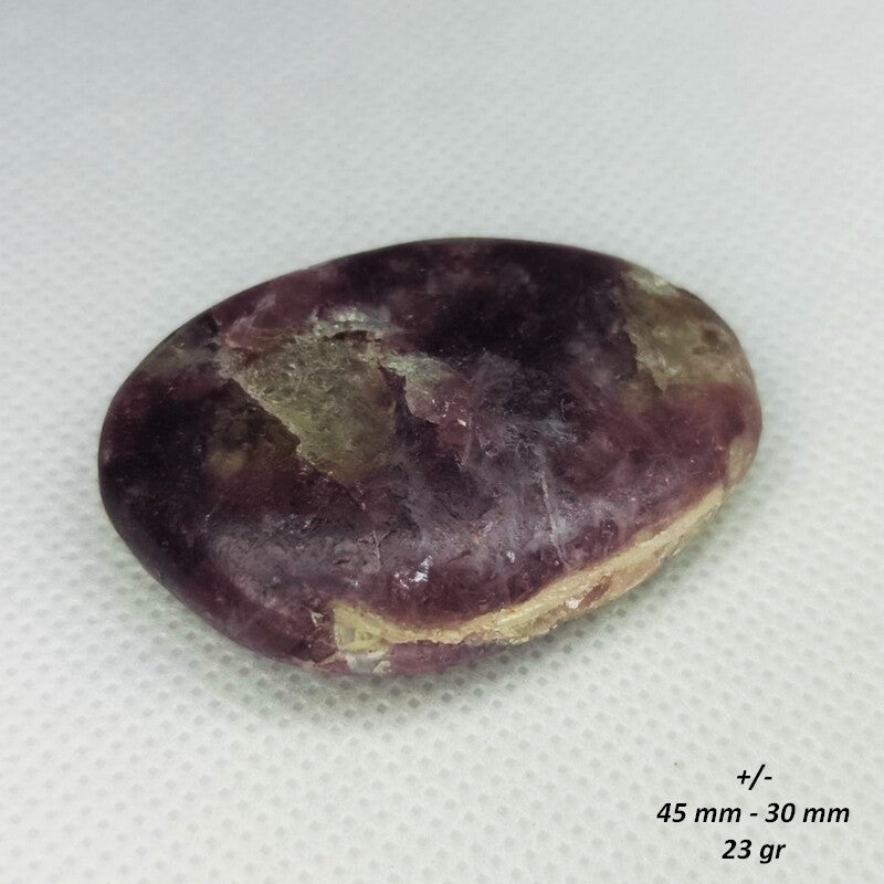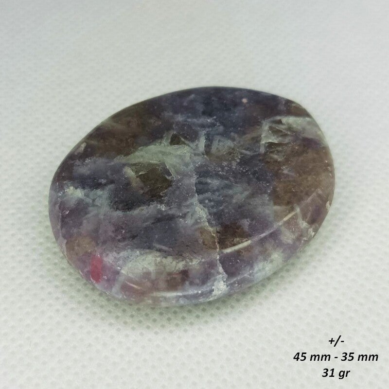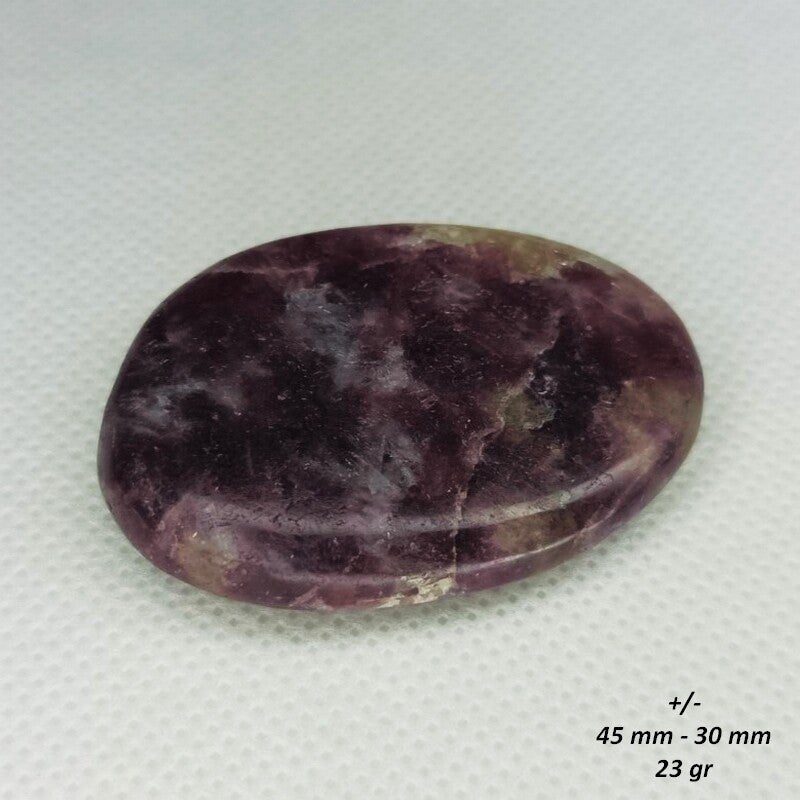 Ce galet est composé d’une lépidolite naturelle polie, façonnée en forme plate et lisse, idéale pour une prise en main agréable. Sa texture douce et son format ergonomique en font un compagnon parfait pour les moments de relaxation, de méditation ou de recentrage.